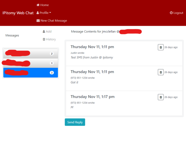 SMS web inbox page